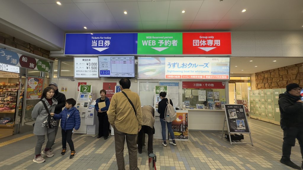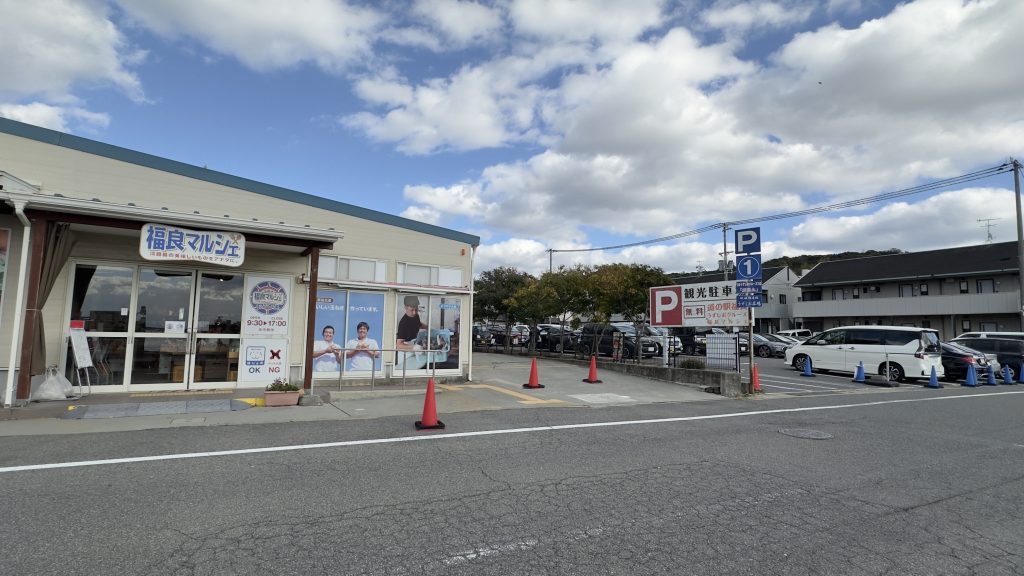 乗り場は「道の駅 福良」ってところで、自分は13:30からのやつで40分前ぐらいについたんですが、正面の0番駐車場がすでに満車で、1番駐車場に止めました。ここは車余裕で止めれましたね。