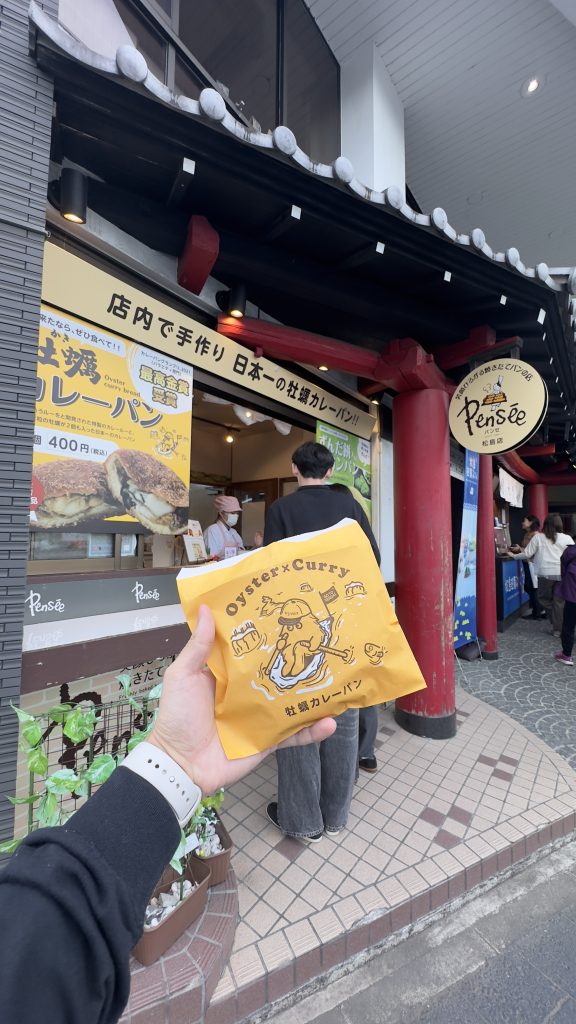 で牡蠣カレーパン買って食べながら、混むと噂の「漁師の海鮮丼」へ。