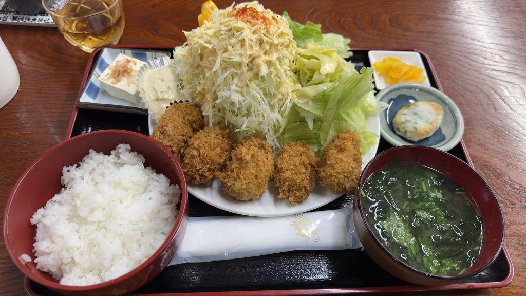 カキフライ定食にしてんけど、キャベツバリ多くて食べきれんかった。