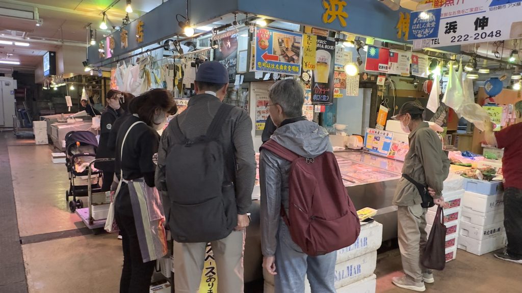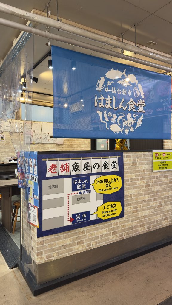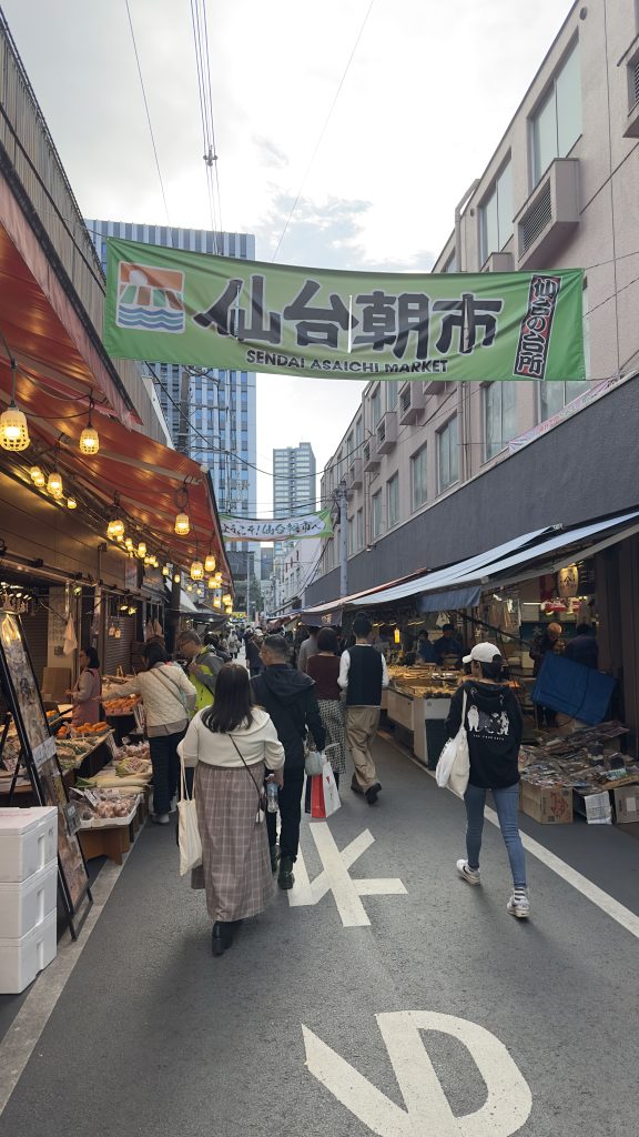 ホテルで荷物受け取って徒歩で仙台朝市へ。